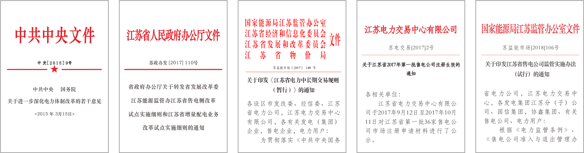 2017年10月30日,国家能源局江苏监管办公室发布《江苏省电力中长期交易规则》,提供用户准入,交易注册,报送电量,市场交易,电费结算等“一条龙”电能销售服务。