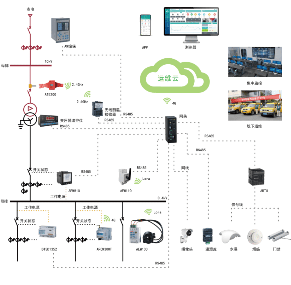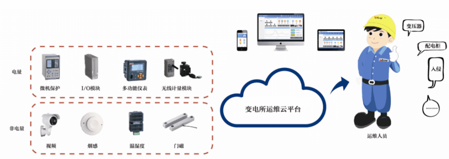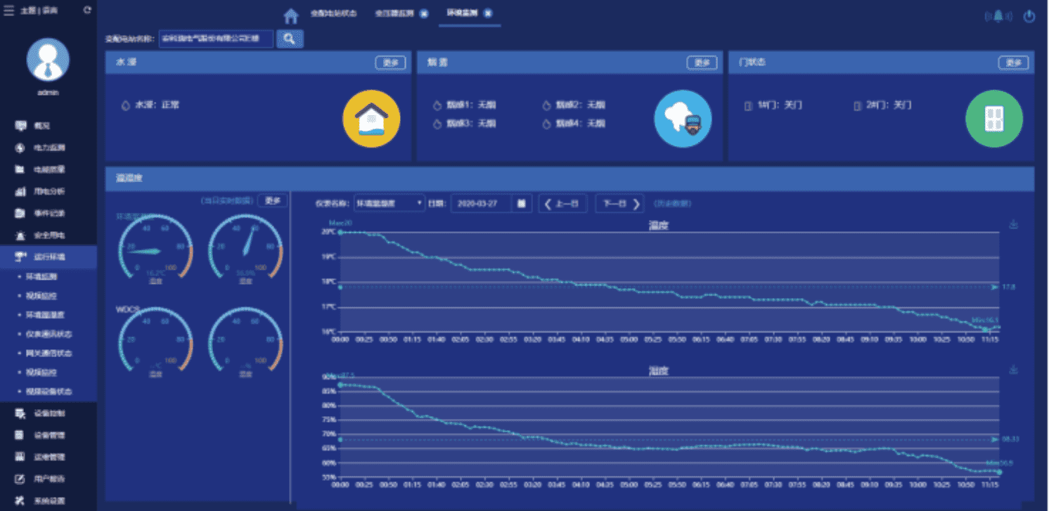 实时监测变电所的运行环境, 包括环境温湿度水漫门磁烟感、线缆温度等, 并可实现视频监视和录像回放