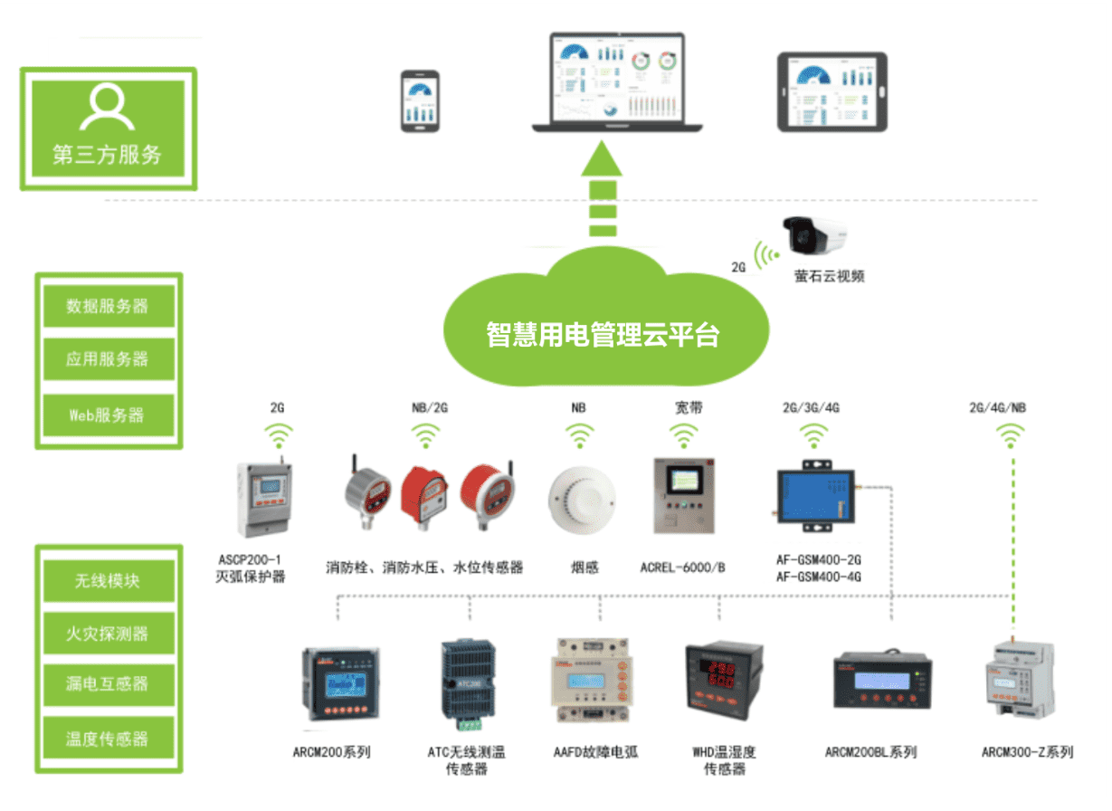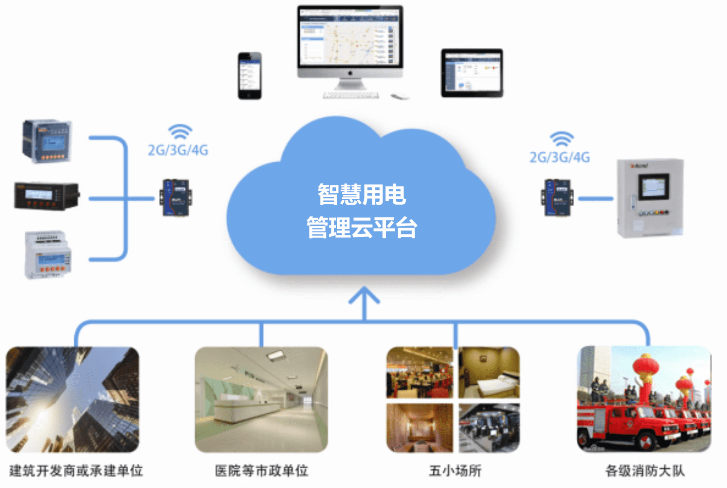 智慧用电管理云平台是针对我国当前电气火灾事故频发而研发的一套电气火灾预警和预防管理系统,该系统是基于移动互联网、云计算技术、通过物联网传感终端,将办公建筑、学校、医院、宾馆、体育场馆、生产企业等人员密集场所的电气安全数据,实时传输至安全用电管理云服务器,为用户提供不间断的数据跟踪、统计分析和安全监管,将平台发现各种安全隐患信息及时告警信号,并推送给企业有关人员,以便其及早检査和消除隐患,真正做到防患于未然。