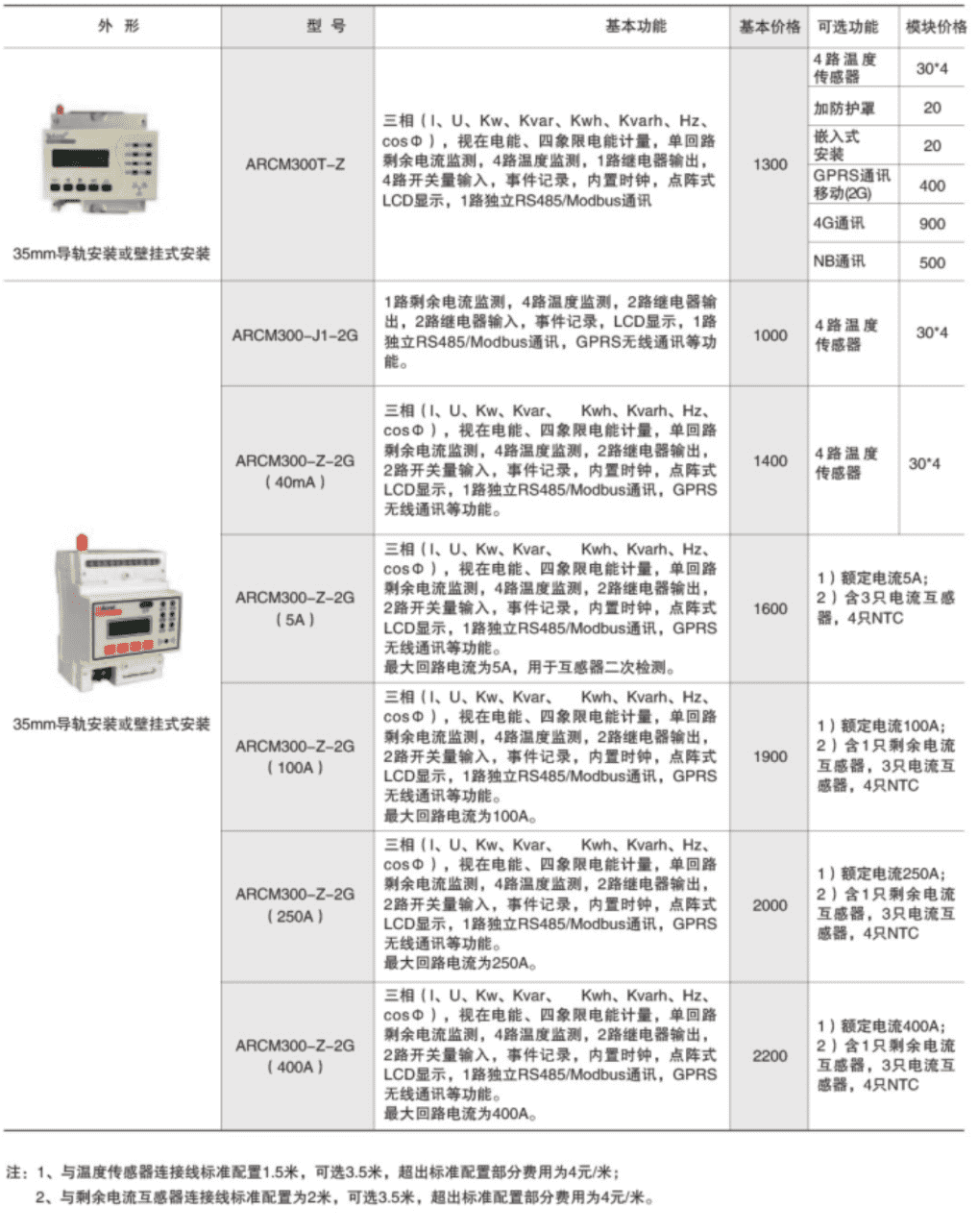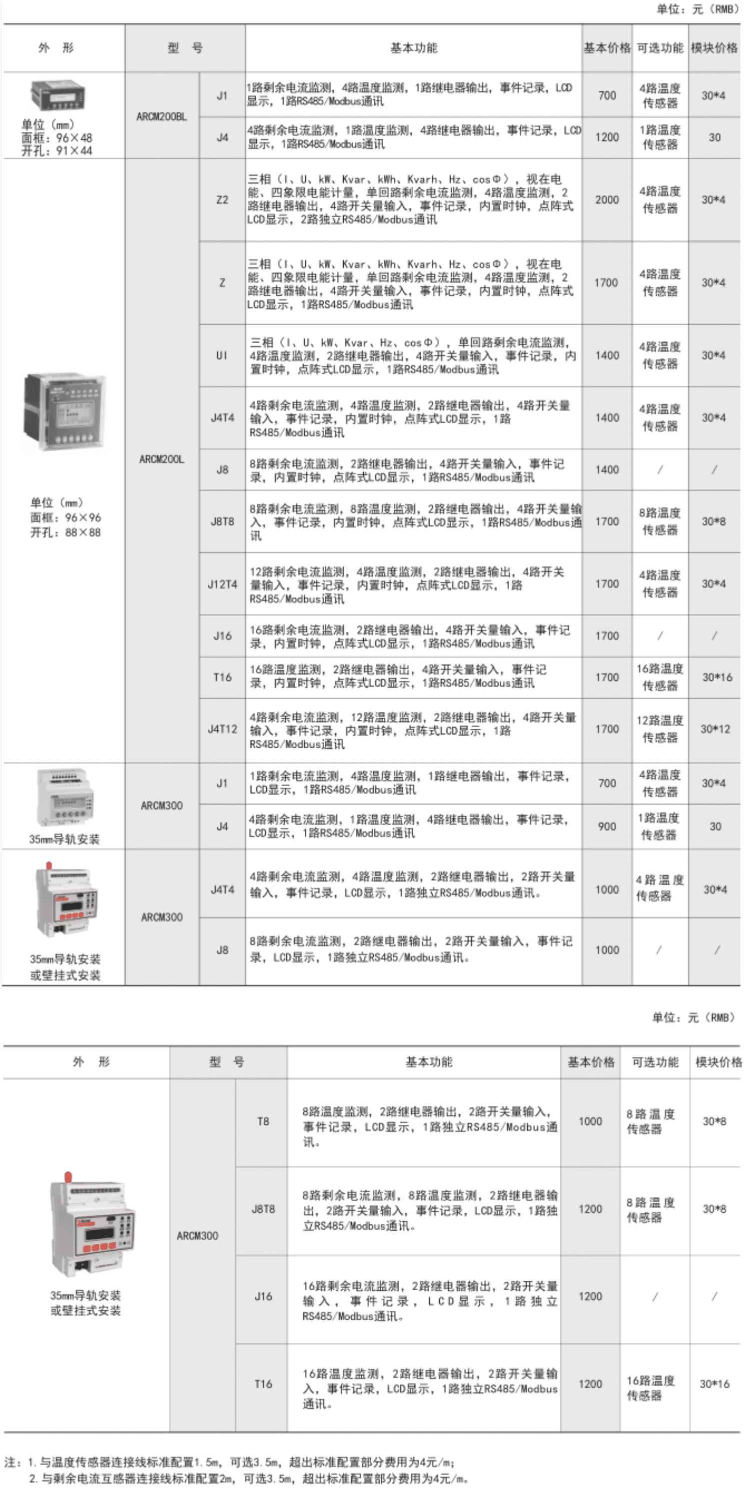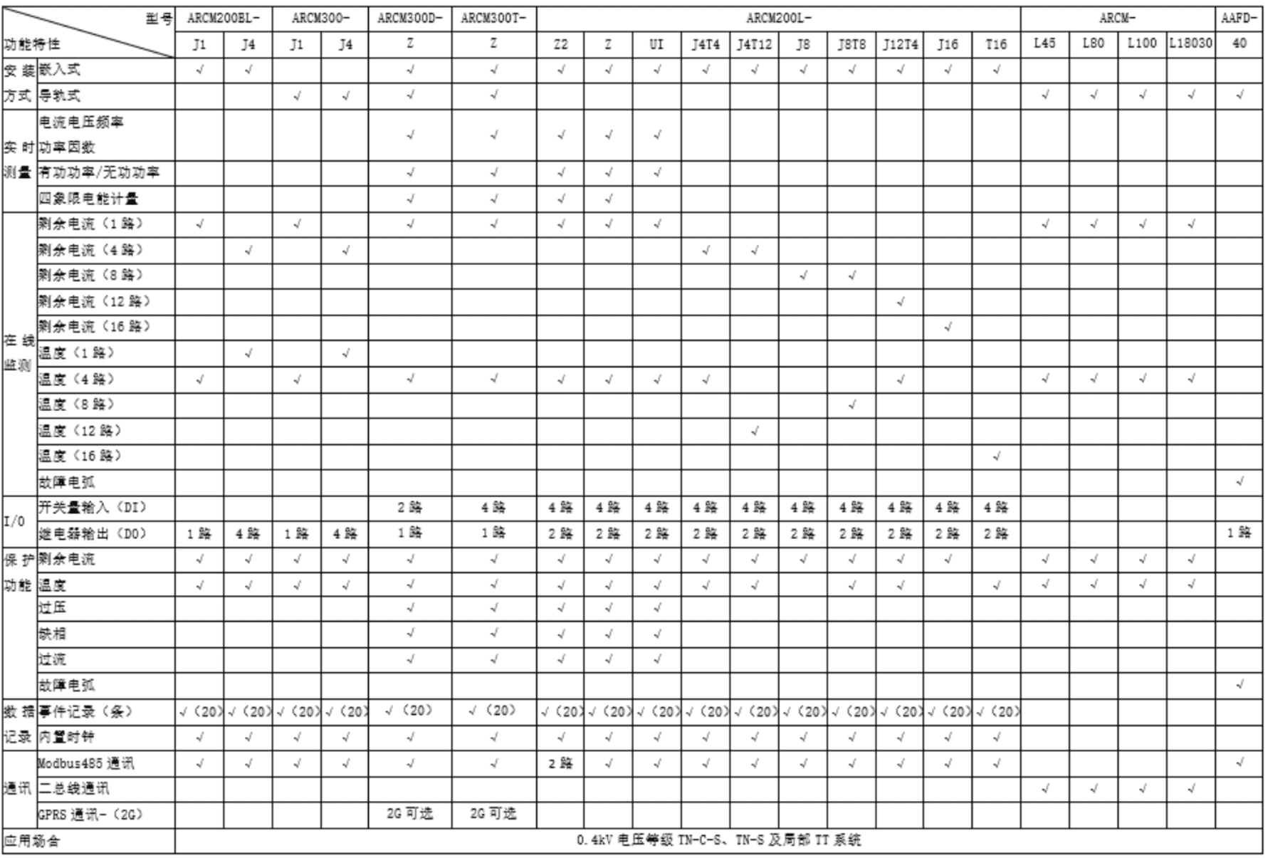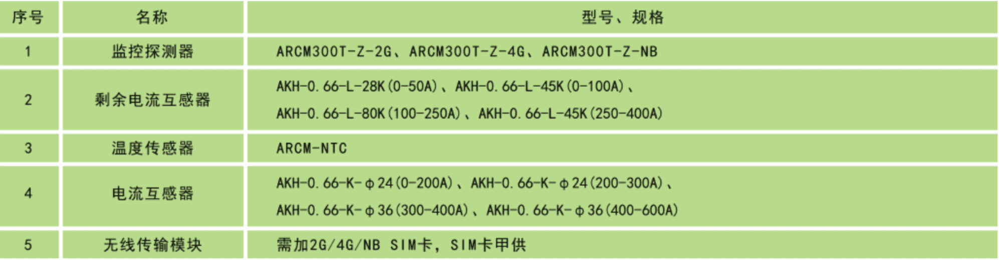 注:以上配置为针对一个回路的产品选型,剩余电流互感器和电流互感器根据实际额定电流选配。