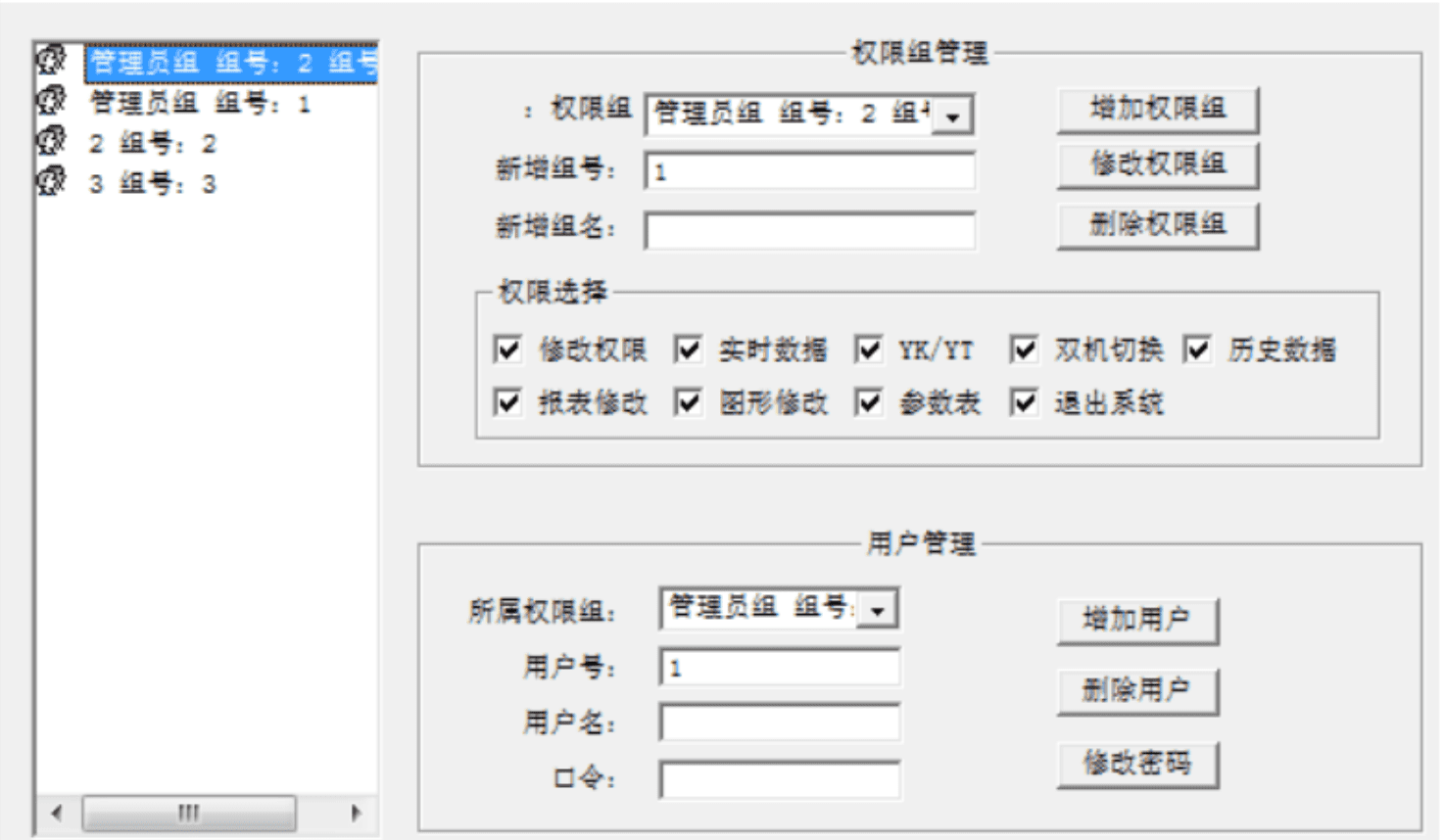 该系统为保障系统安全稳定运行,设置了用户权限管理功能。通过用户权限管理能够防止未经授权的操作(如遥控的操作,数据库修改等)。可以定义不同级别用户的登录名、密码及操作权限,为系统运行、维护、管理提供可靠的安全保障。