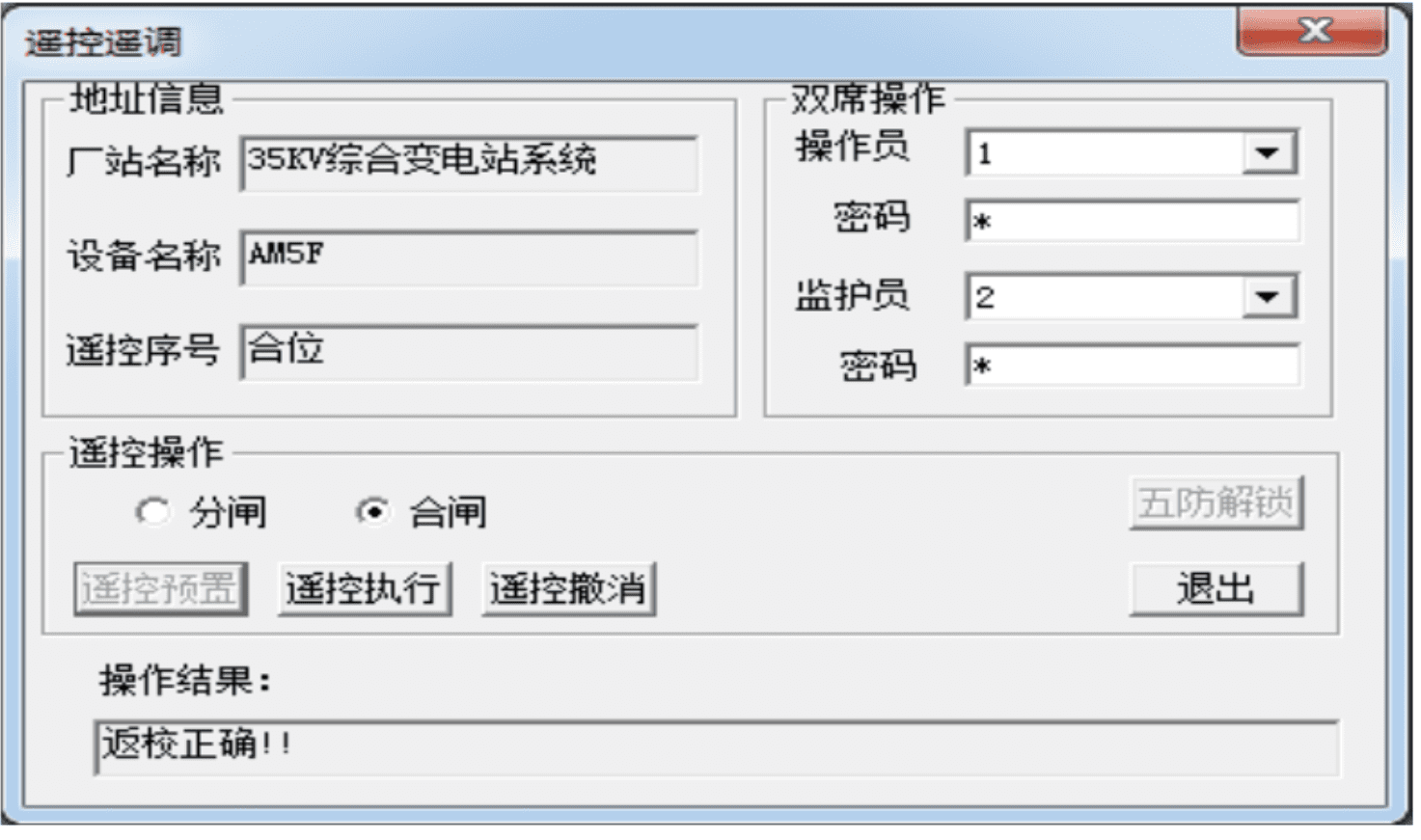 该系统可以对整个配电系统范围内的设备进行远程遥控操作。例如配电系统维护人员可以通过监控系统的主界面点击相应的断路器遥信点调岀遥控操作界面,可以及时执行调度系统或站内相应的操作命令。