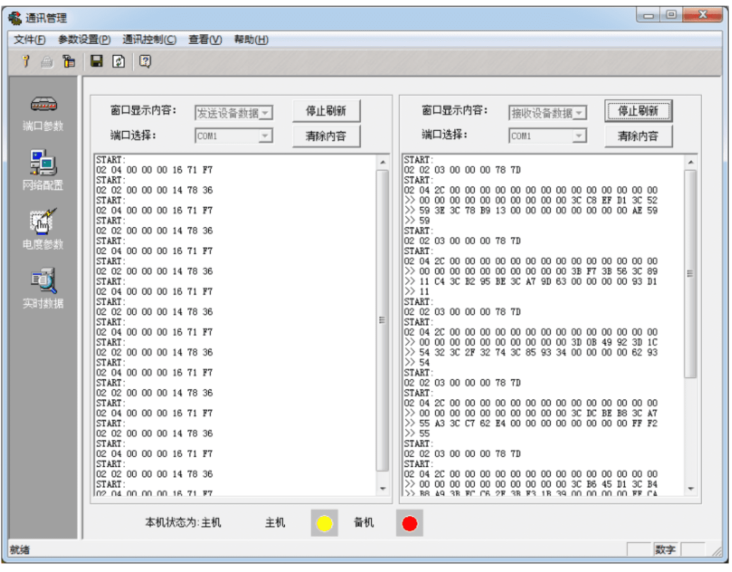 该系统可以对整个配电系统范围内的设备通信情况进行管理、控制、数据的实时监测。例如配电系统维护人员可以通过监控系统的主程序右键打开通信管理程序,然后选择通信控制启动所有端口或某个端口,快速查看某设备的通信和数据情况。