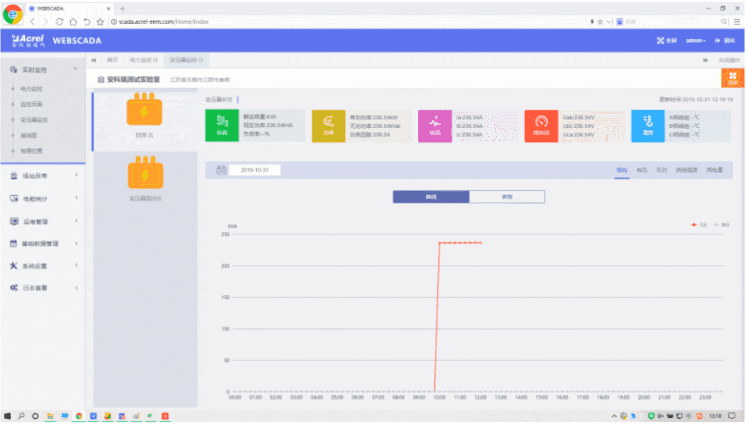 实时变压器曲线可监测变压器的状态,某天的电压、电流、功率、用电量等曲线信息。