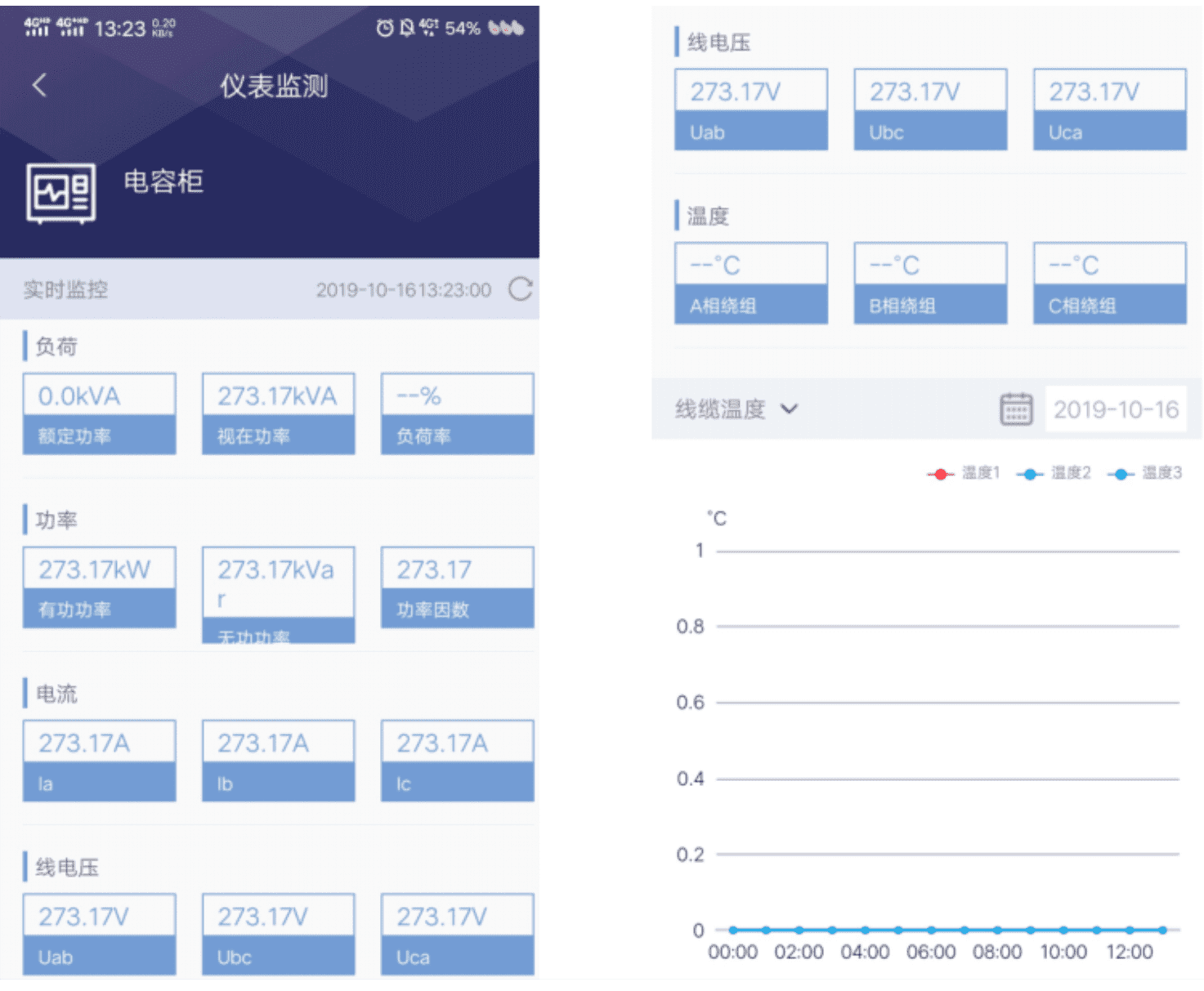 实时数据曲线可监测各个回路的线缆温度、电压、电流、功率曲线信息。