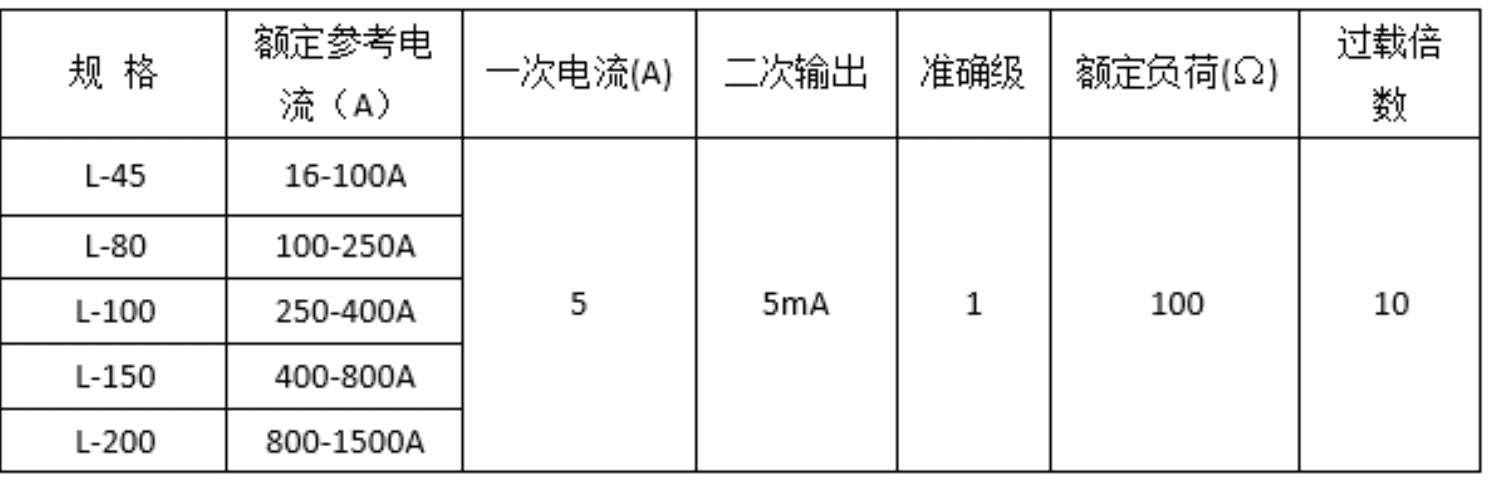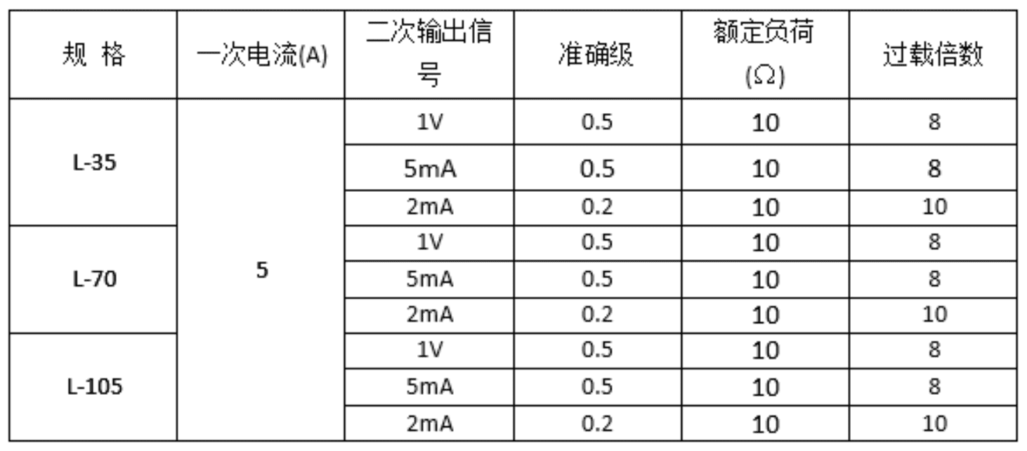 技术要求:输入电流10A;二次输出信号5mA;准确级0.5级;额定负荷:0.2VA;过载倍数8。